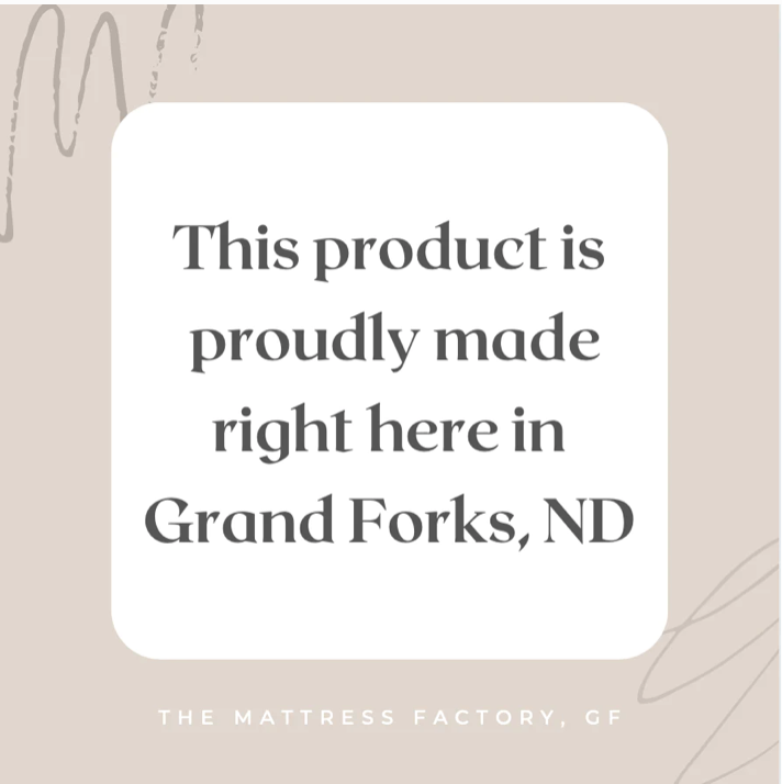 This mattress can be made into any size or shape. If you'd like a specific dimension, please call us at 701-757-1928 to order.